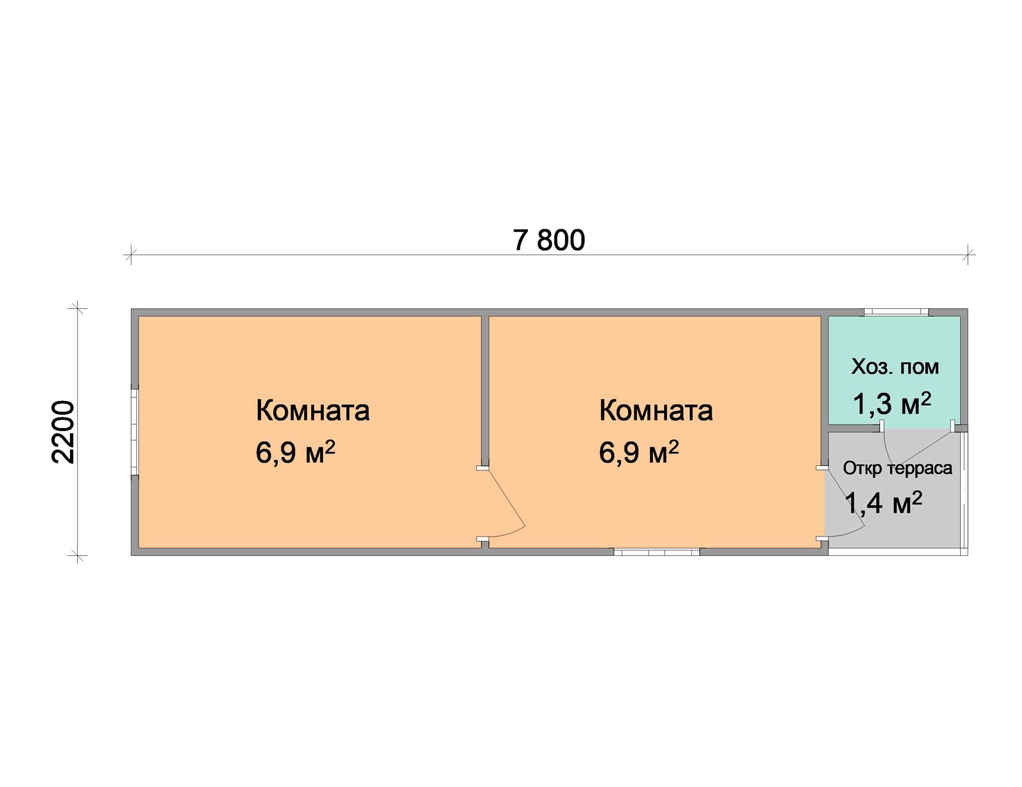Дачная бытовка Тюльпан6.8x2.214.96ДВП-Оргалит: