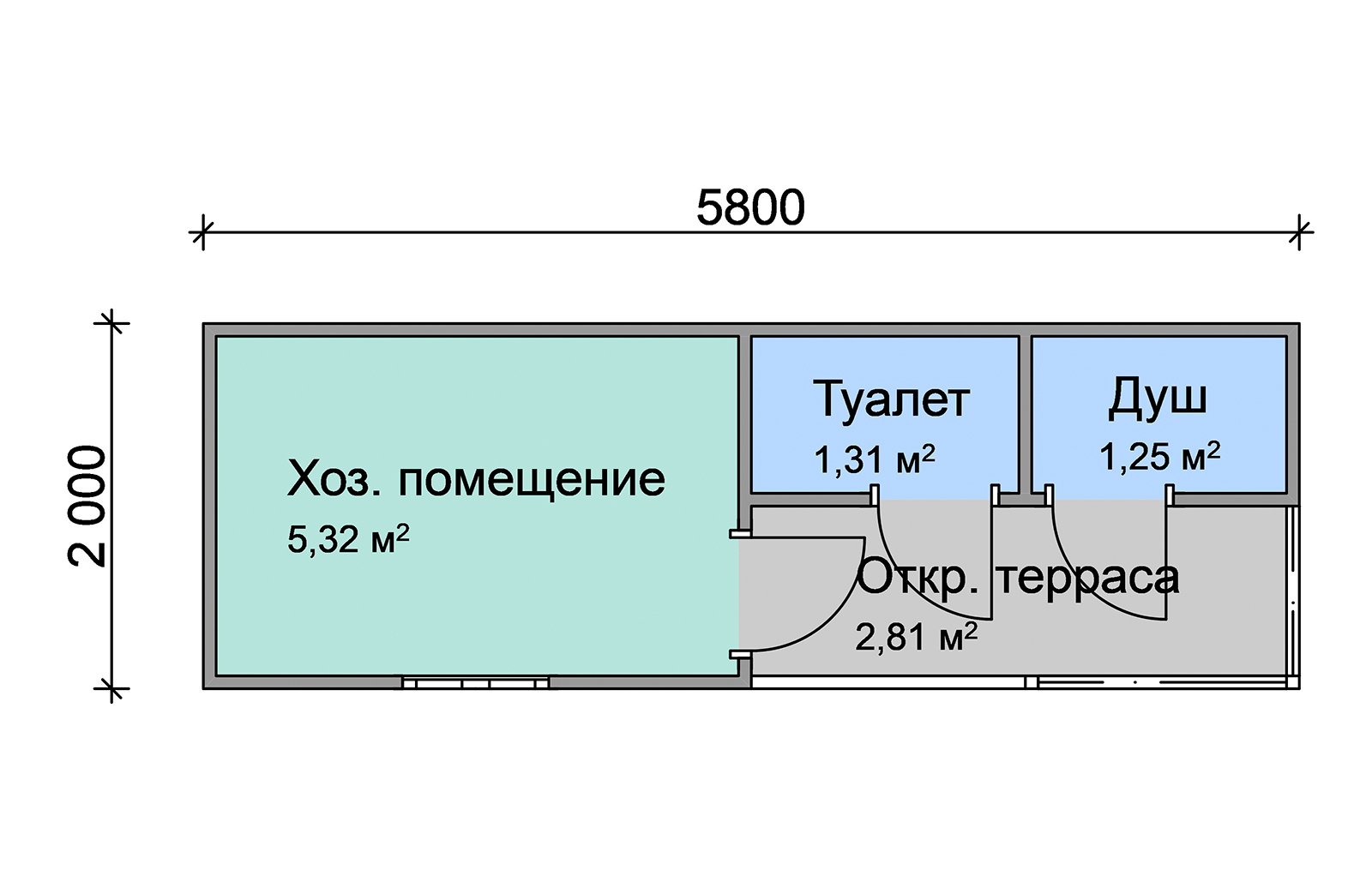 Бытовка для дачи в стиле хай-тек 6х2.4 распашонка6х2,414,4ДВП-Оргалит: