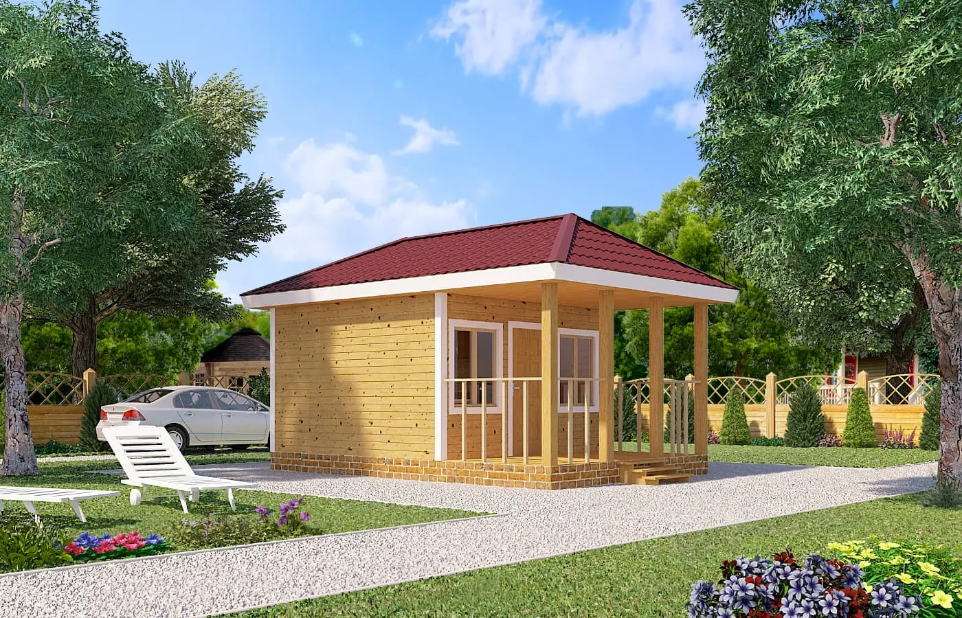Бытовка для дачи в стиле хай-тек 4,8х6 с верандой4,8х628.8ДВП-Оргалит: